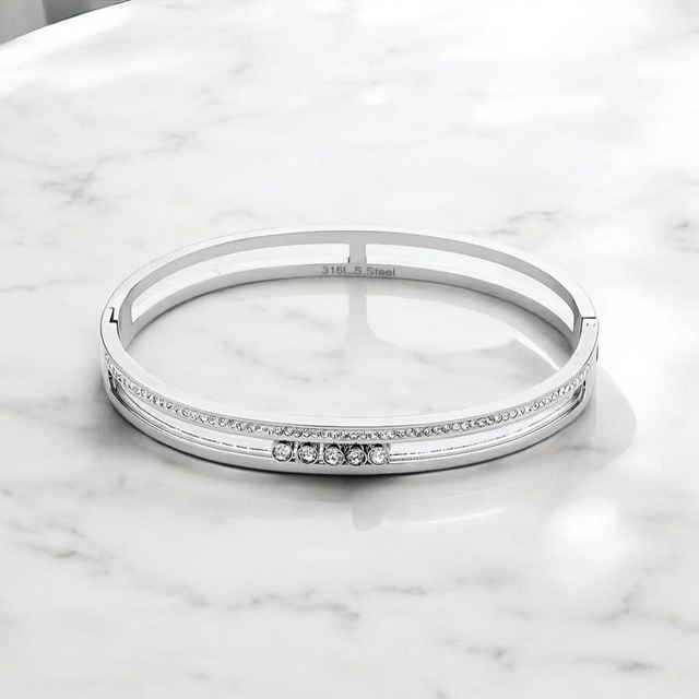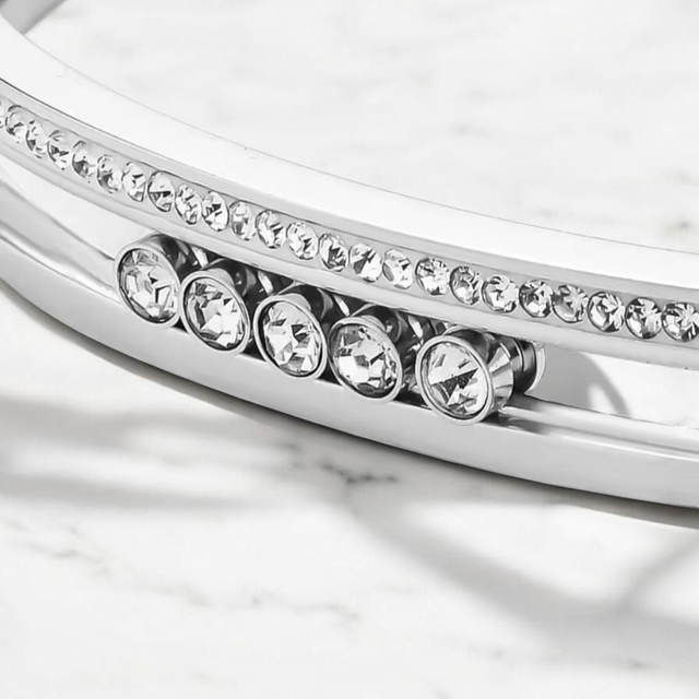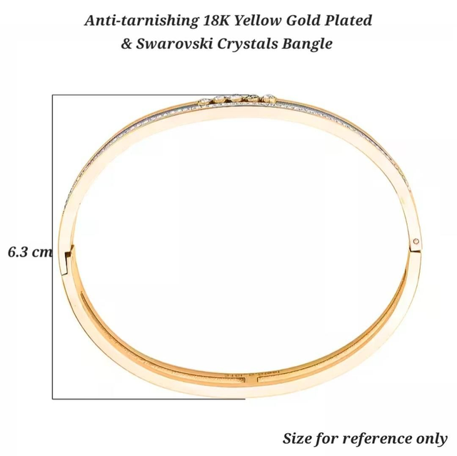 These Bangles are crafted with durable and high-quality of Steinless Steel with a glossy and durability overlaying of Platinum or 18K Yellow Gold Plated. These bangles are embellished with round cut of sparkling Swarovski Crystals. They are Anti-tarnishing, water-resistant and hypoallergenic.