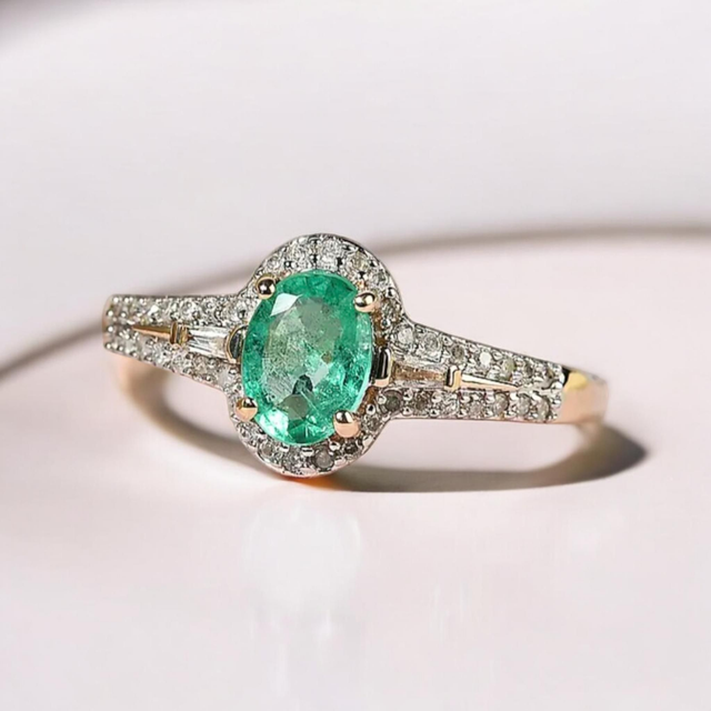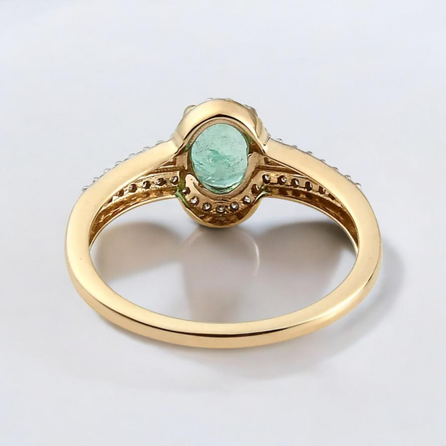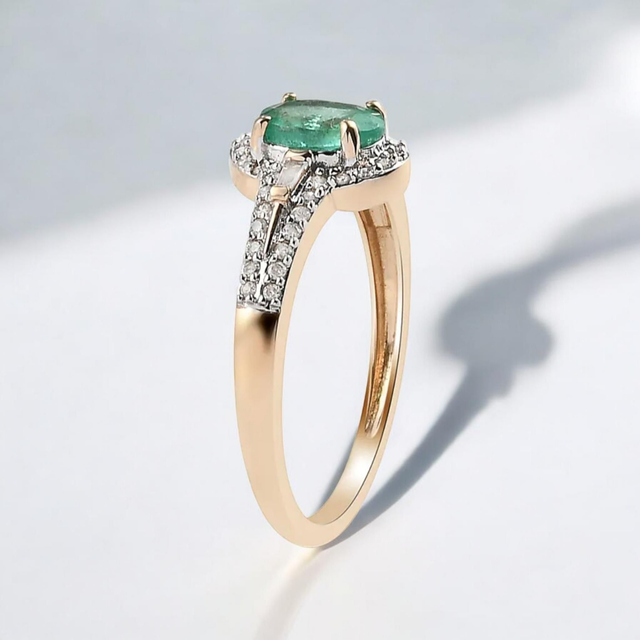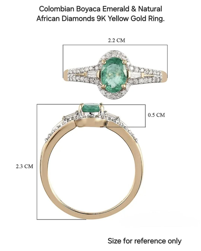 Beautiful Colombian Boyaca Emerald & Natural African Diamonds in 9K Yellow Gold Ring.