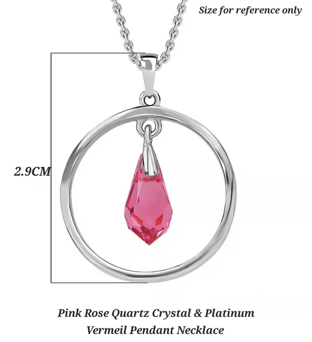 Beautiful Fuchsia Quartz Crystal & Platinum Vermeil Pendant Necklace.