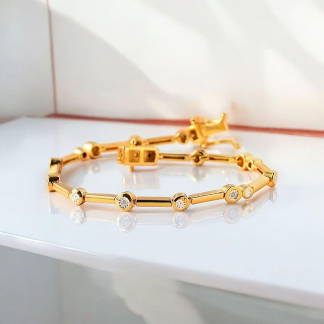 Beautiful Natural Diamonds & 18K Yellow Gold Filled Bracelet.