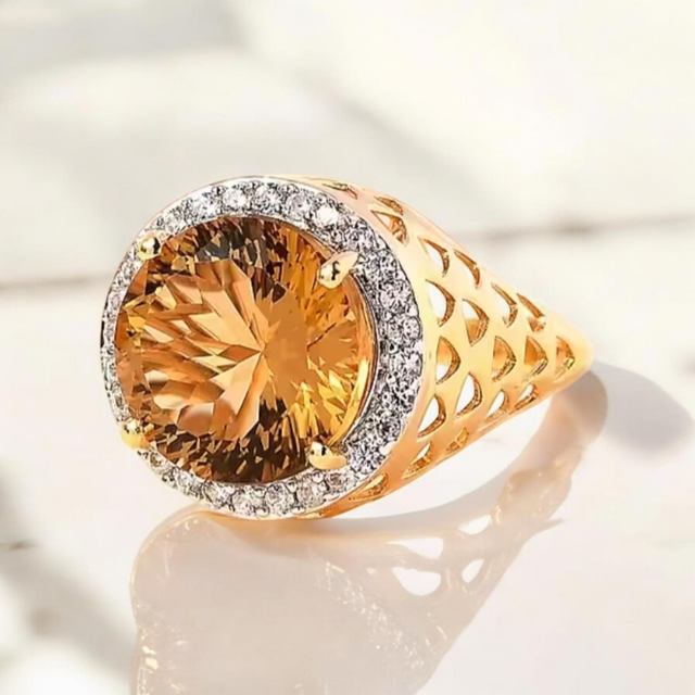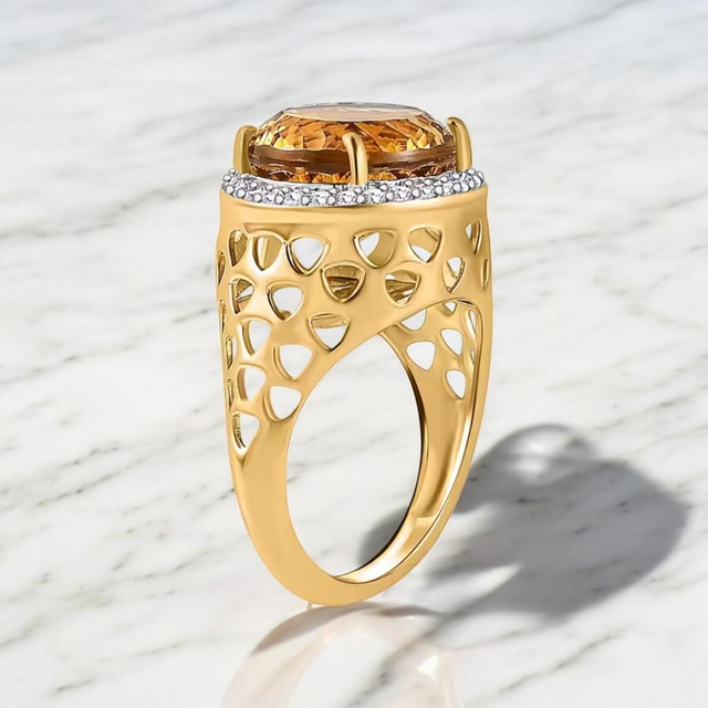 Natural Gaucha Citrine & White Cambodian Zircons 18K Gold Vermeil Statement Ring.