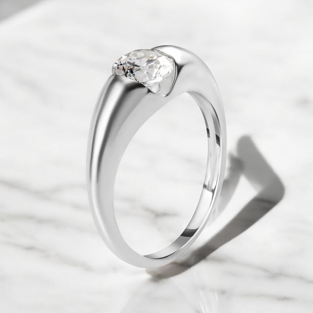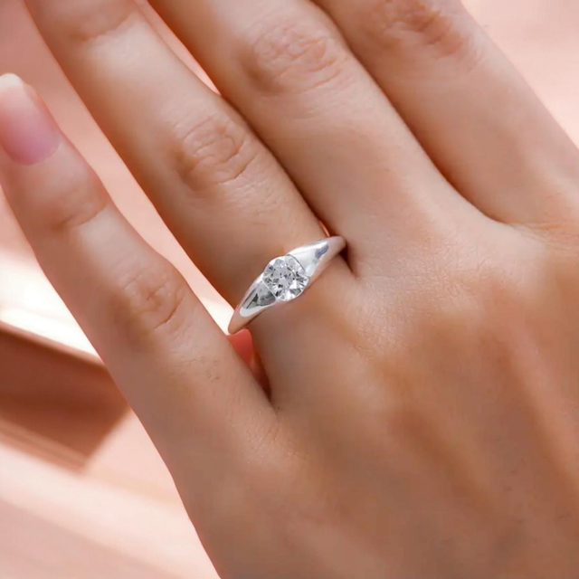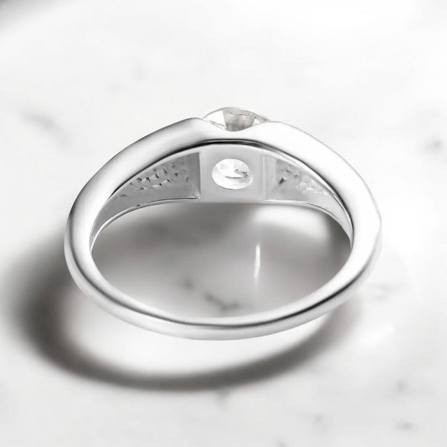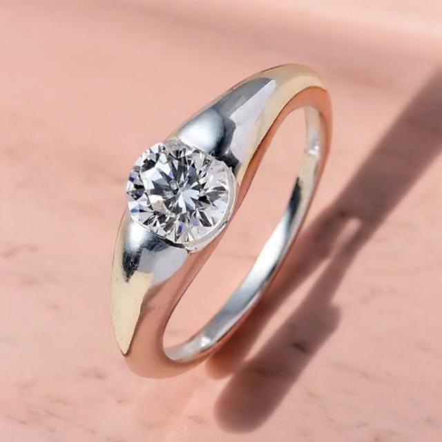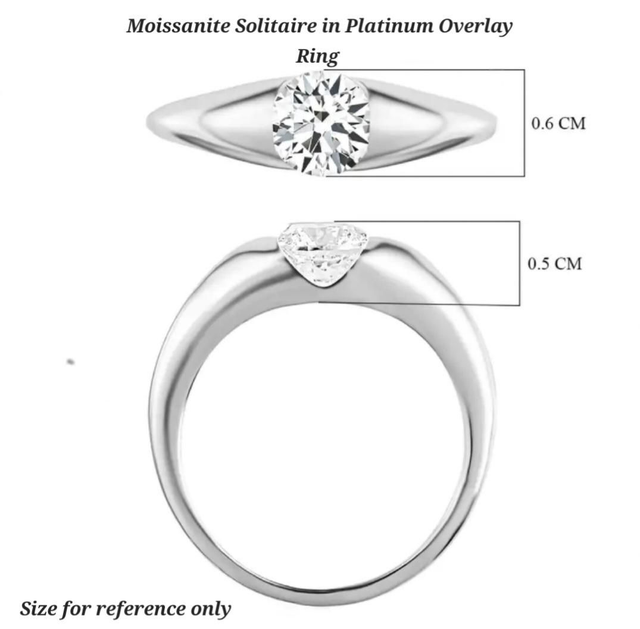 Solitaire Moissanite in Platinum Overlay Ring.