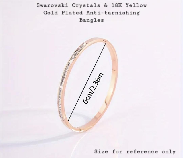 These gorgepus bangles are crafted with Anti-tarnishing, water-resistant and hypoallergenic Steinless Steel with an overlaying of luxurious plating of 18K Yellow Gold. The bangles are embellished with beautiful round cut of sparkling and colourful Swarovski Crystals.